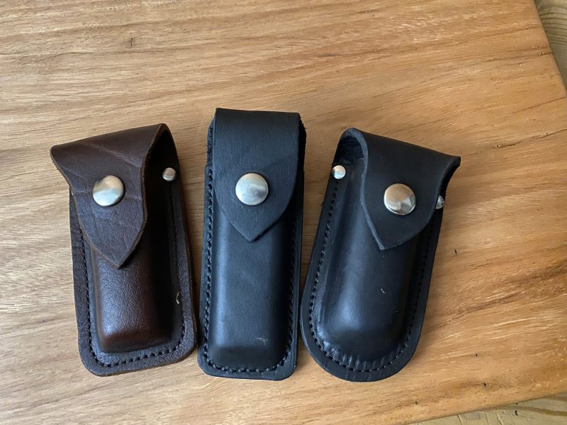 Hand-made from tough premium leather and built to last, our pocket knife pouches are individually made, stiched and rivetted for a snug fit, and with a no-nonsense design will keep your knife secure and ready whenever you need it, on the job, in the bush, or for those everyday needs.