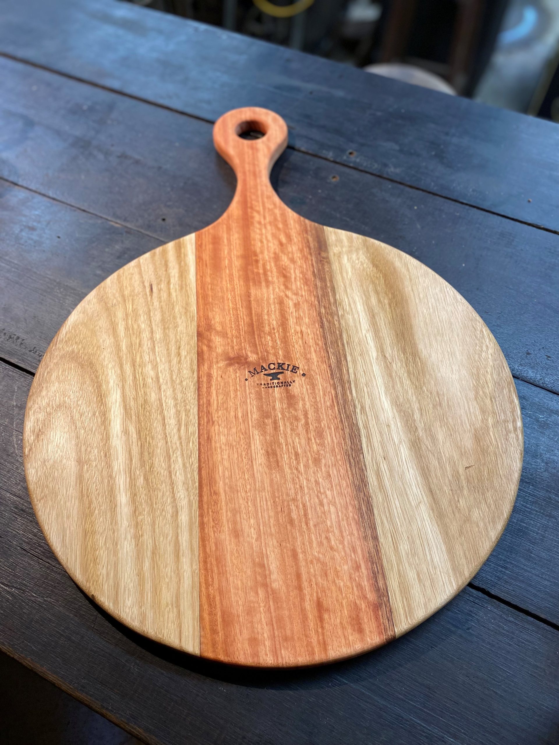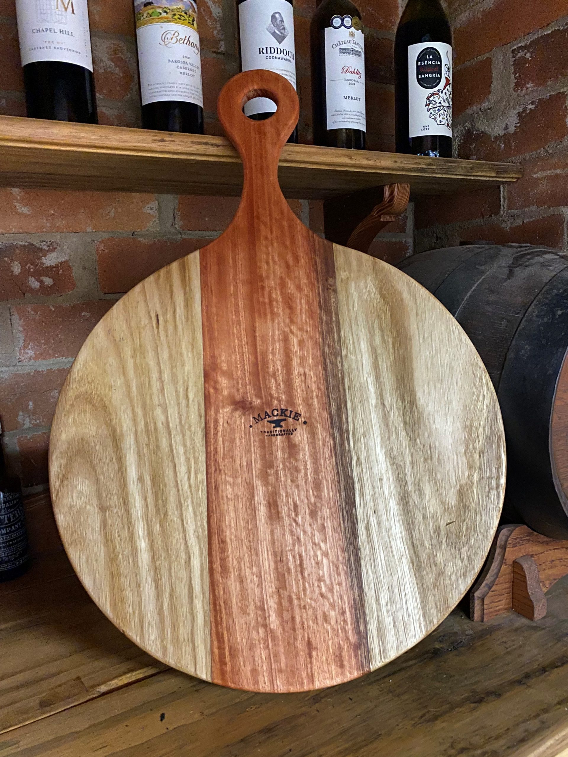 Crafted from premium Blackbutt and Flooded Gum hardwood, this handmade pizza board is a beautiful blend of function and artistry.  Built to last and designed to impress, it’s a timeless addition to any kitchen or dining table.